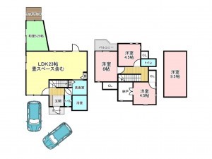 - システムキッチン、洗浄便座、浴室乾燥機、床暖房、天井収納、駐車場2台分、床下収納、トイレ2箇所